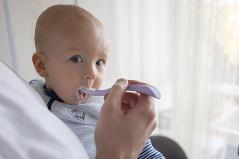 Answer: Yogurt can be an allergen, so it is important to monitor your little one for signs of a possible allergy. The key is to offer one small spoonful for the first introduction, then watch for any symptoms such as gas, a rash or congestion. If any of these kinds of symptoms arise following an introduction to yogurt, be sure to contact your baby’s care provider. If you offer the spoonful and do not notice any possible reactions, then you can offer a bit more the next day and continue to do so moving forward, while being mindful of a possible reaction.