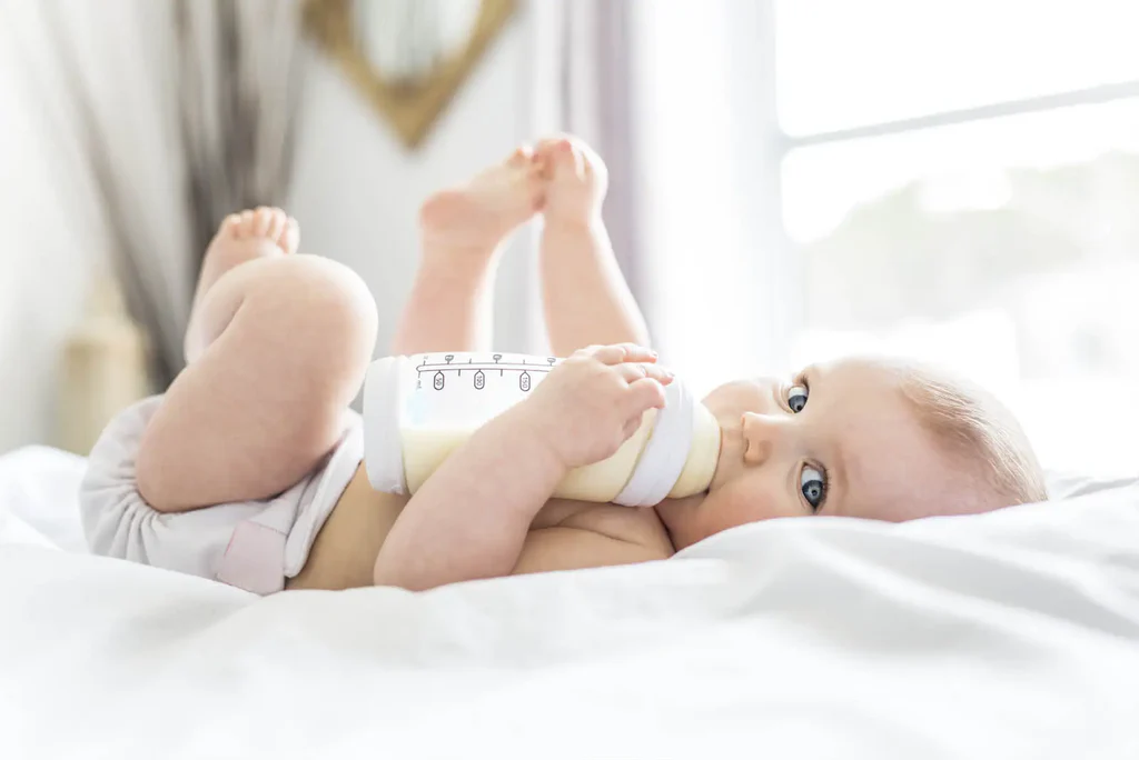Make sure to check the temperature, it should be about 98°F. Pour some on the inside of your wrist where the skin is soft and sensitive if you can’t measure the bottle temperature.