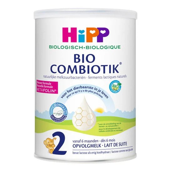 HiPP Dutch Stage 2 Organic Combiotic Formula is expertly crafted to meet the evolving nutritional needs of infants aged from 6 months. Whether used alongside breastfeeding or on its own, this follow-on milk ensures a smooth transition and supports your baby's growth and development.Formulated with natural lactic acid bacteria, prebiotics, essential fiber, and Omega-3, HiPP Dutch Stage 2 blends nature and science to nourish your child during the weaning phase and beyond.Key Features