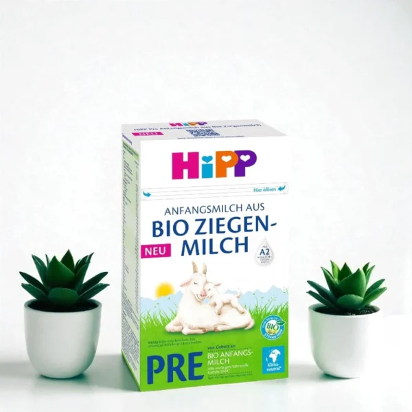 Discover the HiPP Goat Milk Formula Difference – Stage PRE of HiPP’s goat milk line is expertly crafted for newborns with mild digestive issues or sensitivities to cow’s milk. It provides a breast milk-like formulation that’s gentle, well-tolerated, and easy on tiny tummies.At the heart of this formula are delicate A2 goat milk proteins, which are digested more efficiently by infants. Combined with lactose-derived prebiotics, this formula supports a healthy gut microbiome and digestive comfort.Research confirms that goat milk formula is comparable to cow’s milk formula in supporting healthy growth and development, and may be even better tolerated by some babies – making it a nurturing choice for your newborn.Please note: Goat milk formula is not suitable for babies with lactose intolerance or cow’s milk protein allergy.Unique Features of HiPP Goat Formula – German